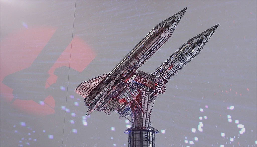 Icon Of War is a depiction of a ground to air missile. These have culturally become an embodiment of low-level insurgents around the world. Totemic mounted on the back of a Toyota pickup in the desert of Afghanistan to the top of prominent landmarks around London during the Olympic games they are instantly recognizable silhouettes against the contemporary news skyline. Much like internet videos adoring statistics of military projectiles, describing their awesome firepower Tom Hall has elevated this weapon to ‘high art’ giving it an honored cultural status. We are asked to worship it and the dance floors illuminated alter.
